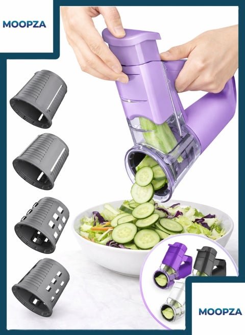 Electric Vegetable Slicer Multifunction Food Cutter with 4 Interchangeable Blades Portable Handheld Salad Maker for Fruits and Vegetables Easy One Hand Operation (Random Colours)