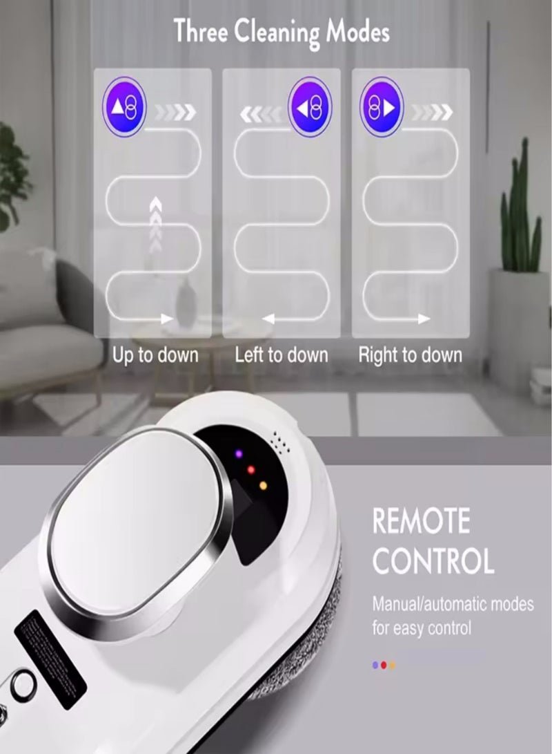 【Excellent Cleaning Effect】 The double spiral cleaning head of the window cleaning robot could perfectly clean the windows and solves the headache of cleaning high-rise windows. Suitable for glass of thickness above 3mm and size above 45*45cm, 1 square meter can be cleaned in 4 minutes, and the effect of large windows is better.Three auto cleaning modes for choosing or manually control.